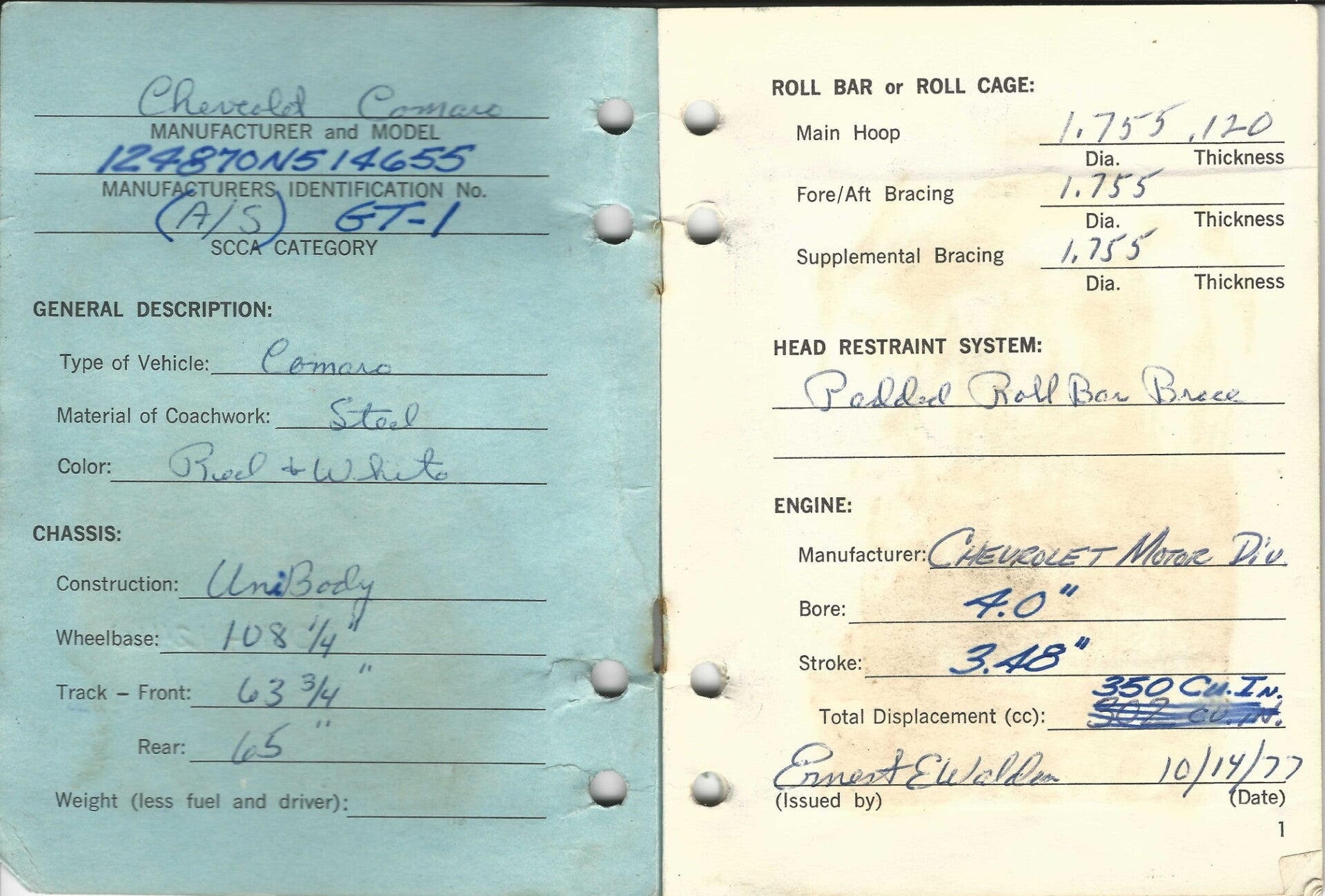 Purchased new and converted to Trans Am Class racer, a stock body class, later converted to GT-specs, allowing fender flares and more performance.