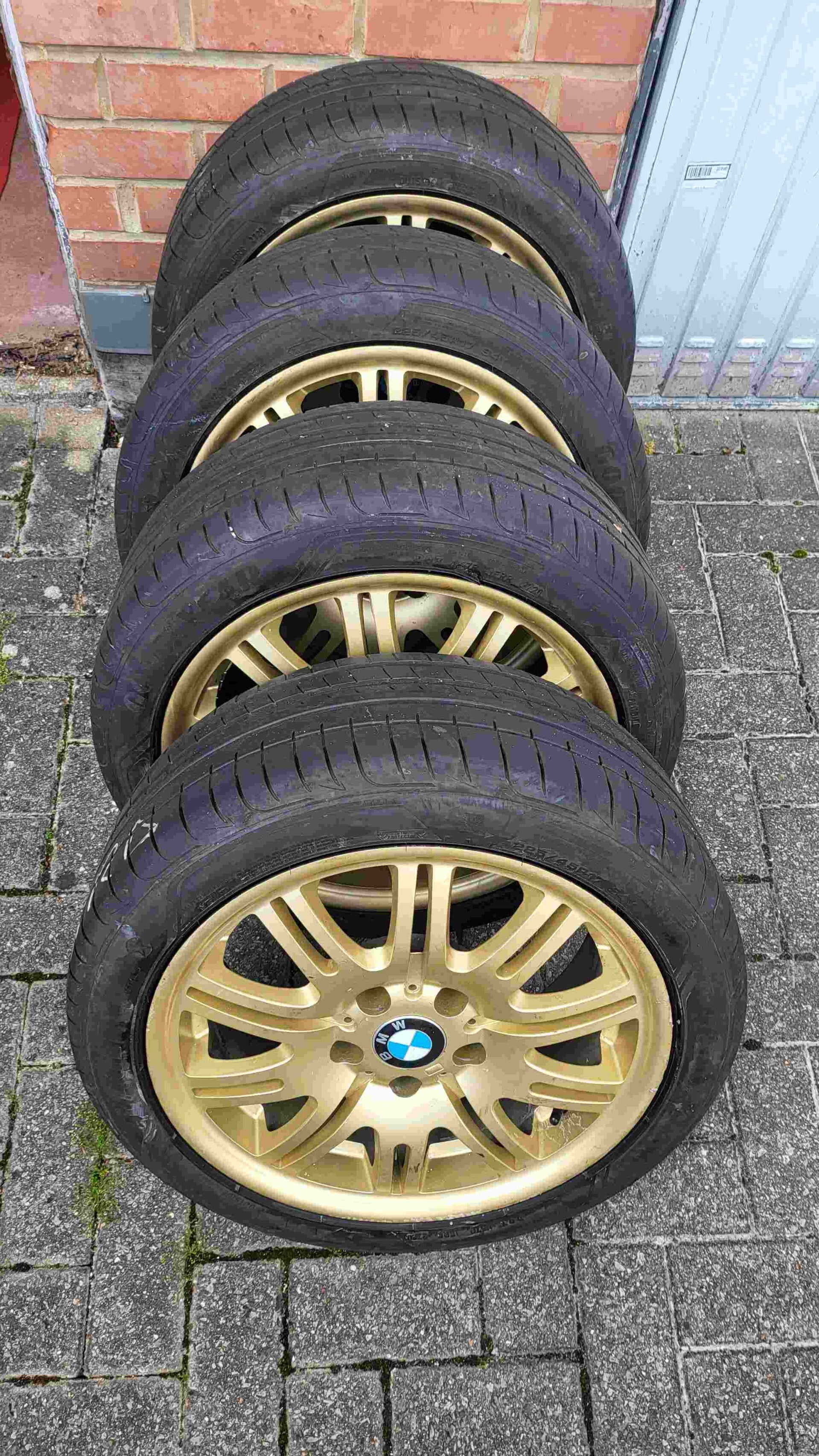 4 gouden velgen met 17" Goodyear Eagle straatbanden F1